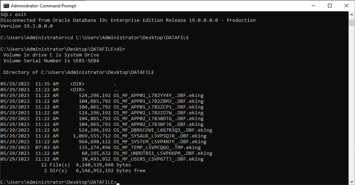| 6 | 5 | DBRECOVER_TEST | O1_MF_DBRECOVE_L6G7B1Q3_.DBF.eking |