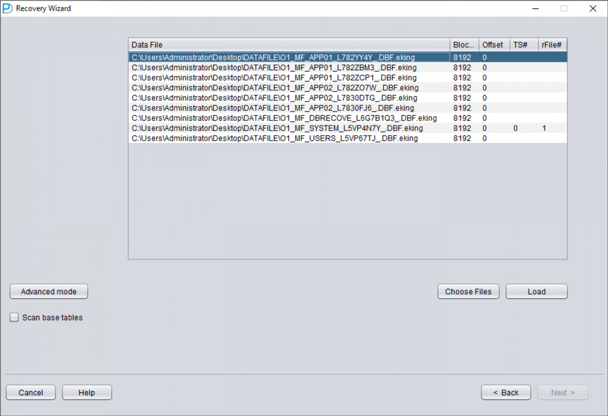 之后点击LOAD按钮,DBRECOVER会整体扫描SYSTEM01.DBF并找出其中的数据字典基表数据。